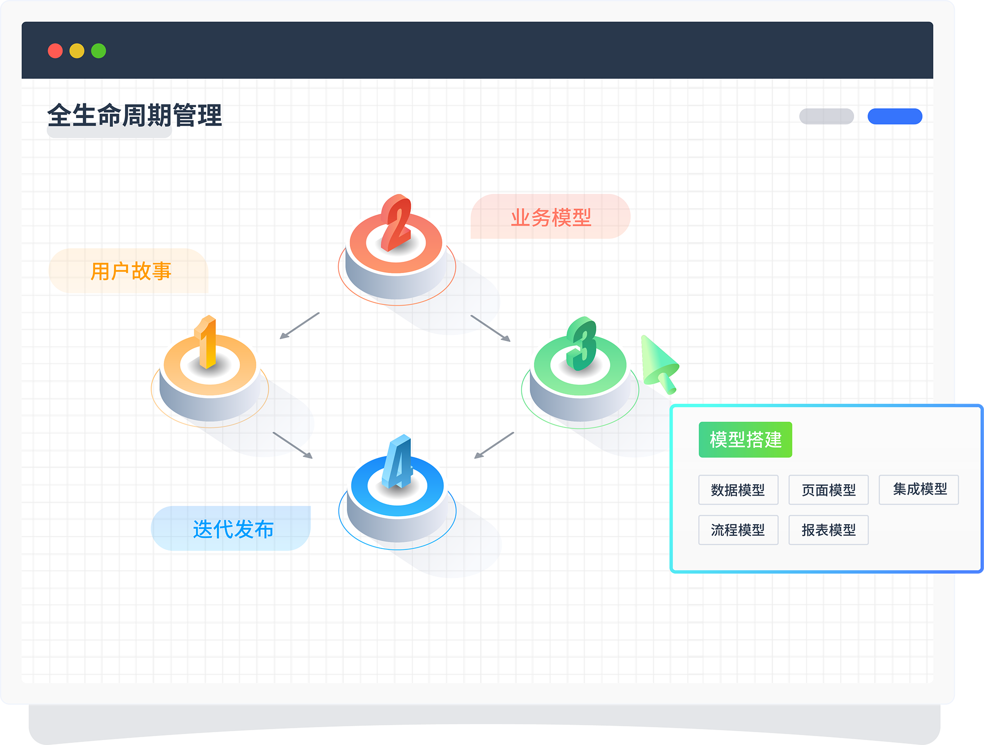围绕产品的用户故事——模型设计/迭代——模型搭建——模型发布,,,进行系统的全生命周期闭环管理。。。